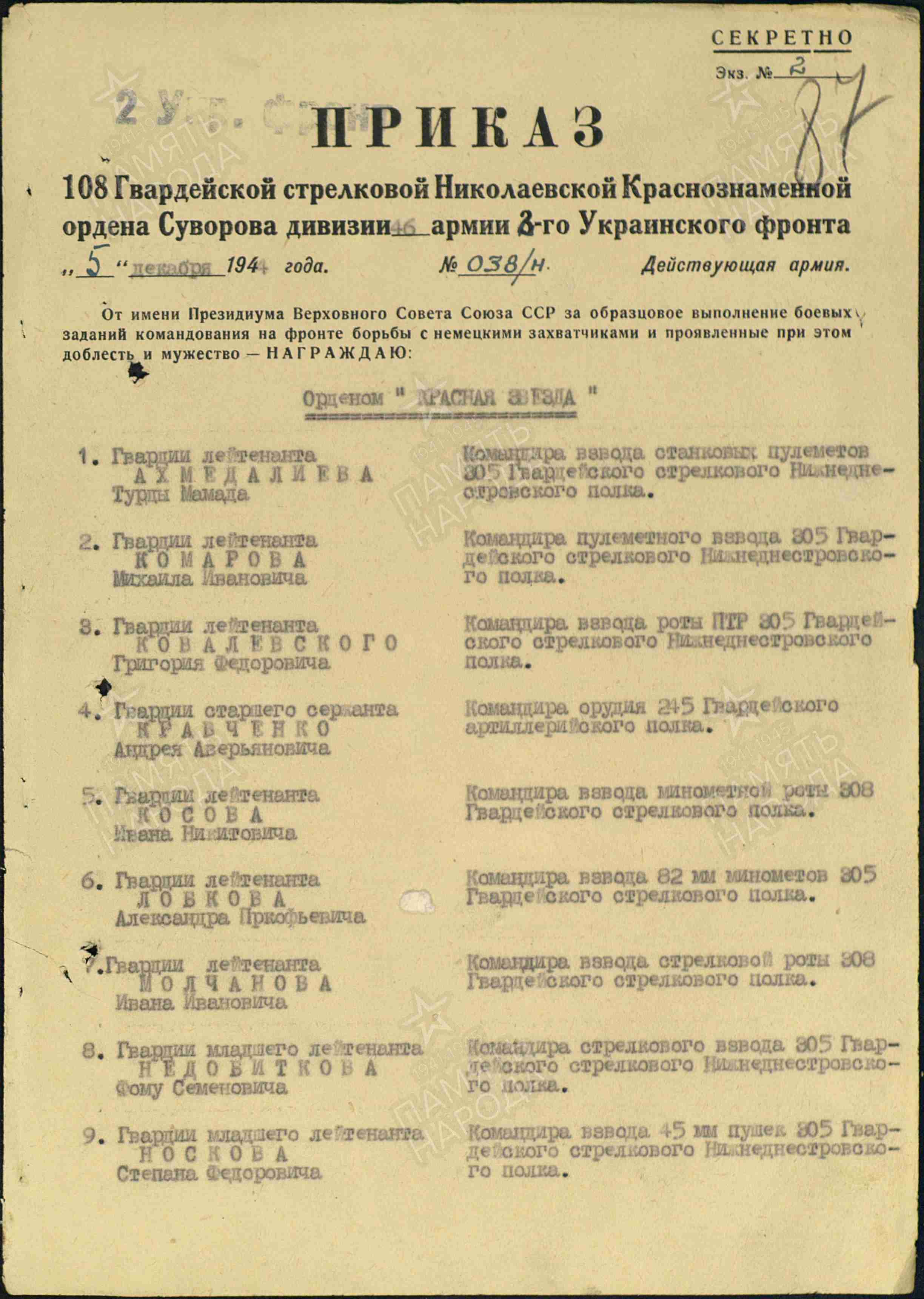 Фронтовой путь: 305 гвардейский стрелковый полк 108 гвардейской стрелковой дивизии