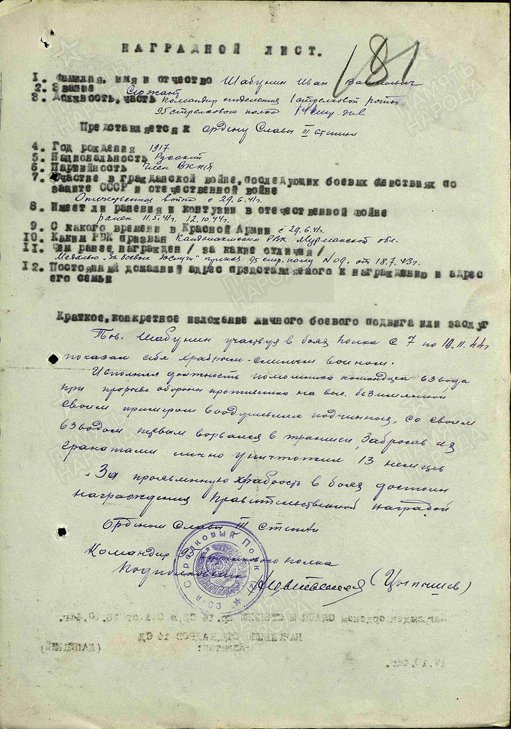 Информационные материалы подготовлены на основе данных информационной системы «Память народа». Правообладателем используемых электронных копий архивных документов, фото и иллюстраций является Российская Федерация в лице Министерства обороны Российской Федерации.