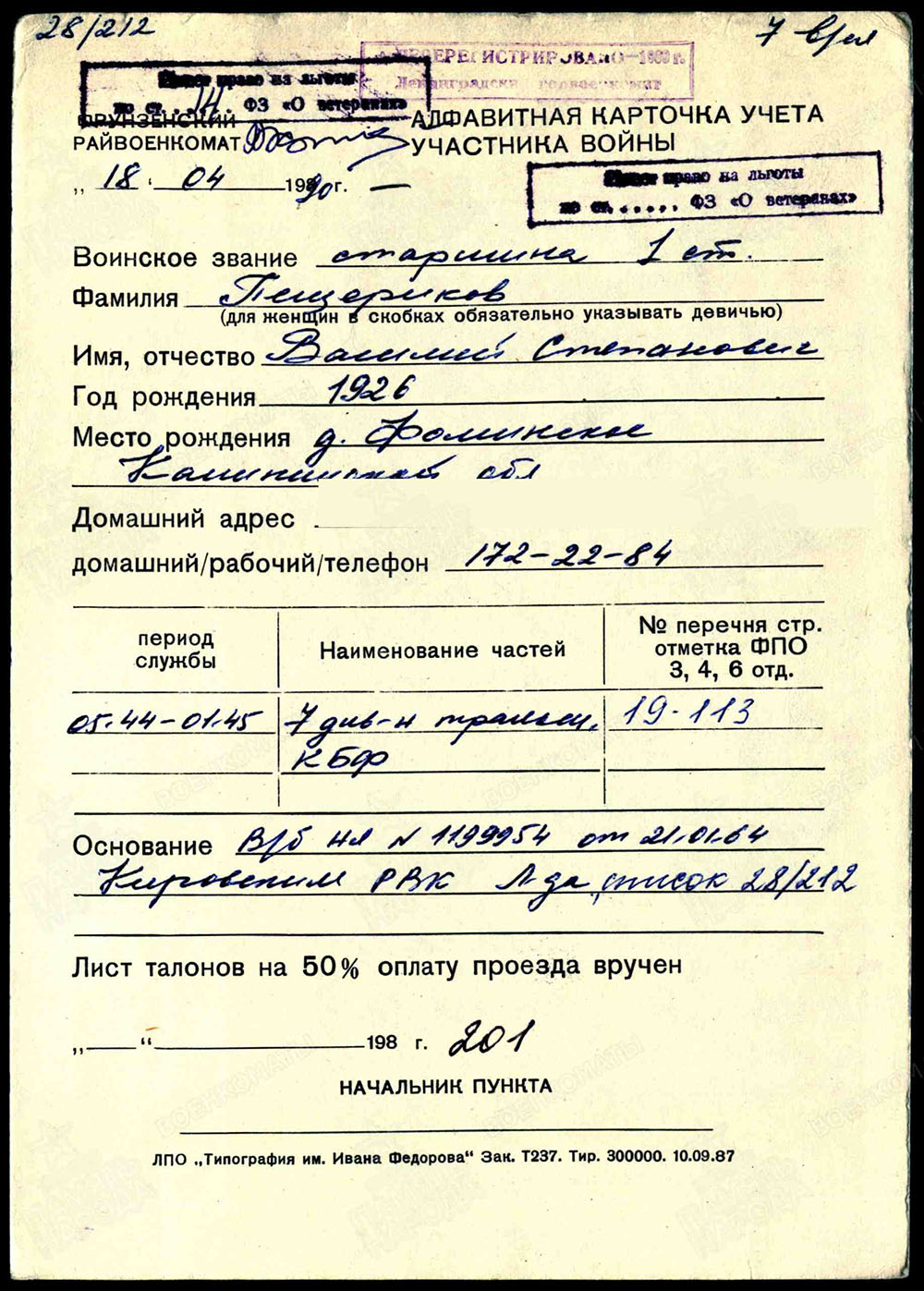 Призван 17 апреля 1943 г.