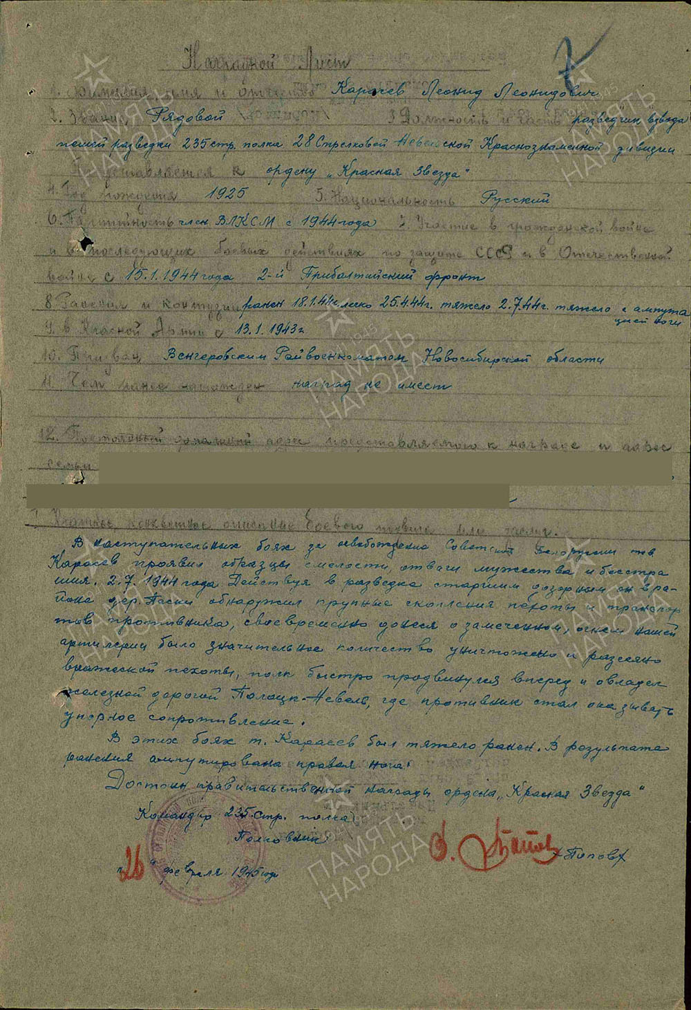 Информационные материалы подготовлены на основе данных информационной системы «Память народа». Правообладателем используемых электронных копий архивных документов, фото и иллюстраций является Российская Федерация в лице Министерства обороны Российской Федерации.