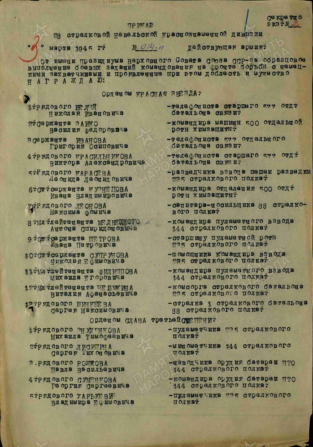 Награды: Орден Красной Звезды