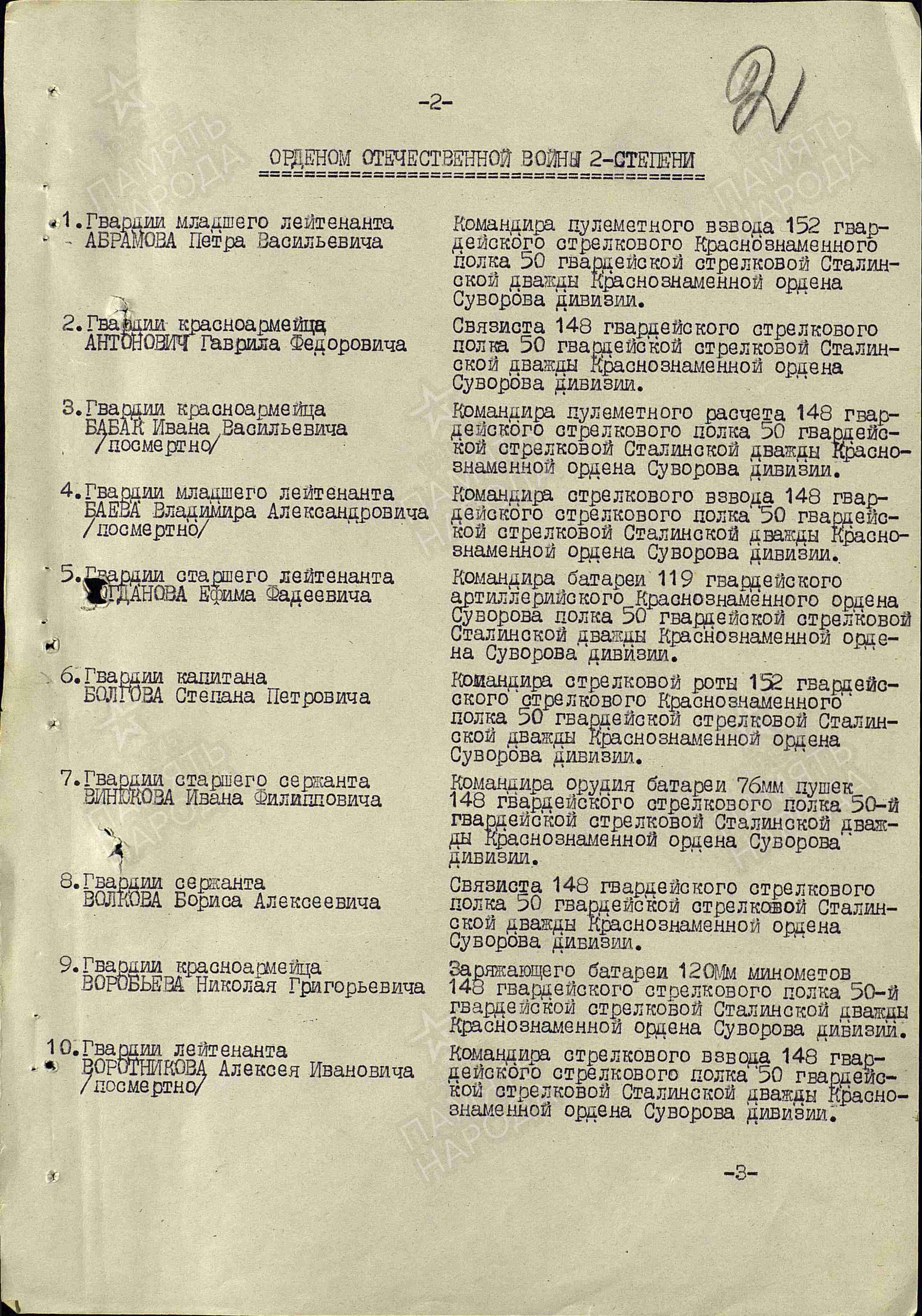 Информационные материалы подготовлены на основе данных информационной системы «Память народа». Правообладателем используемых электронных копий архивных документов, фото и иллюстраций является Российская Федерация в лице Министерства обороны Российской Федерации.