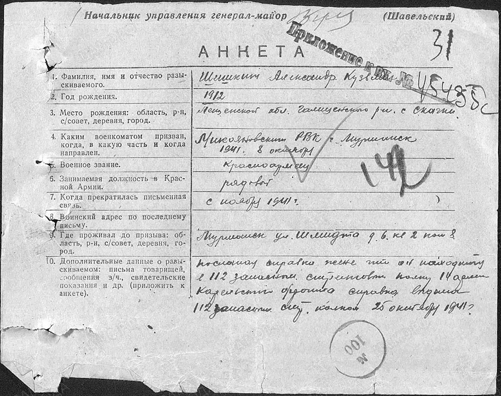 Пропал без вести, связь с бойцом прервалась в ноябре 1941 года